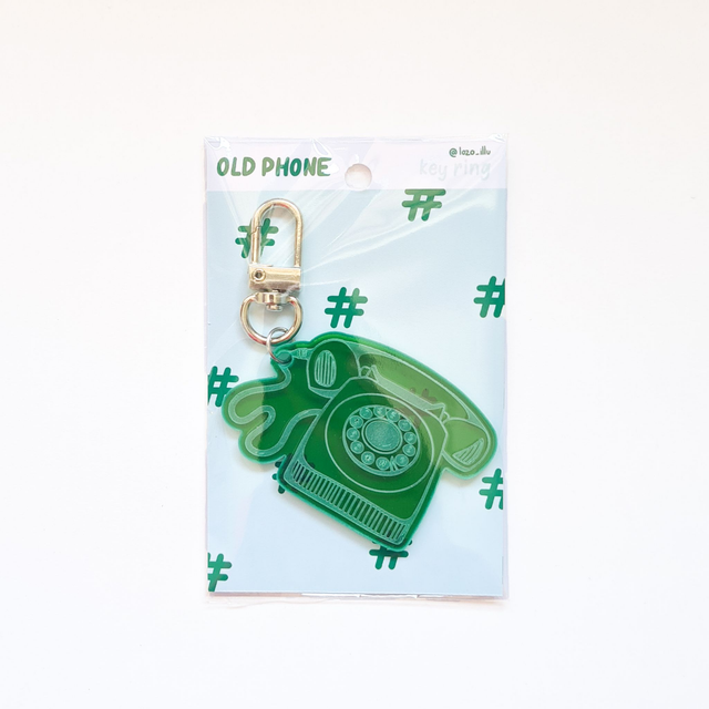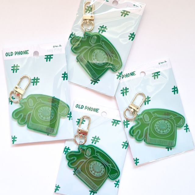 Antique telephone key ring in green acrylic 5.7 x 4cm
