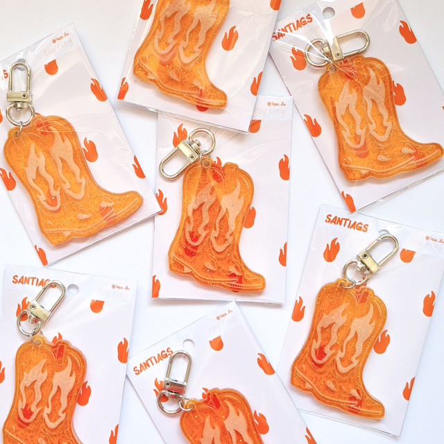 Orange glitter acrylic santiag keyring 5 x 6cm